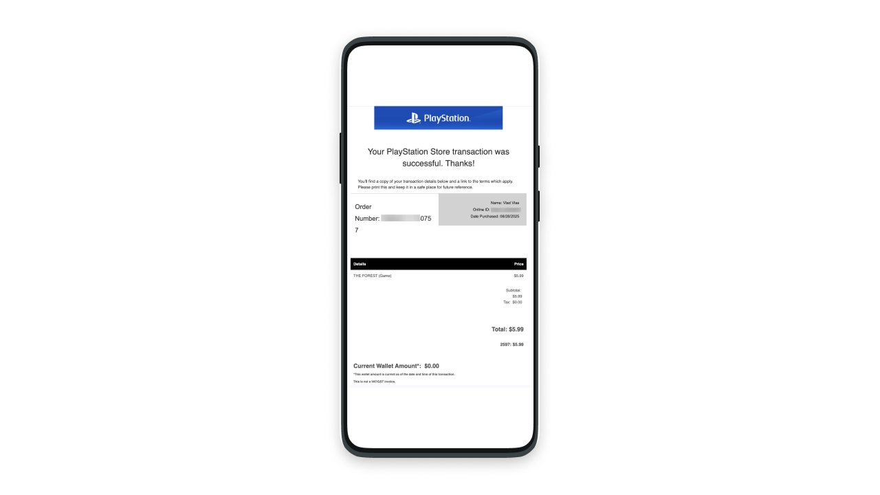 Если оплата прошла успешно, вы увидите окно с надписью “Thank You. We emailed your receipt to you”, а игра/DLC будут доступны к загрузке. Также вам поступит уведомление в чат-бот и транзакция отобразится в мини приложении Wanttopay, а на почту привязанную к аккаунту PSN вам поступит чек об оплате.