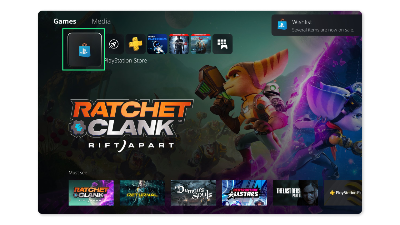 - Откройте на консоли Playstation Store.