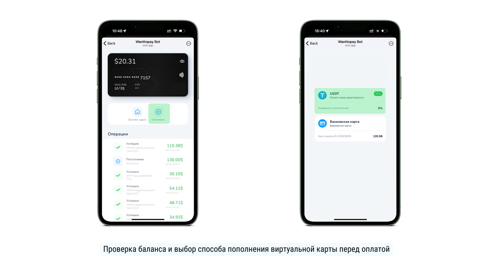 2. Введите данные виртуальной карты Wanttopay: