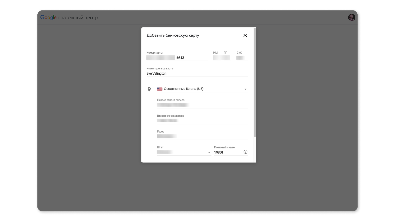 Примечание. При привязке нового способа оплаты обязательно используйте настройки вашей сети согласно биллинг адресу вашей виртуальной карты.