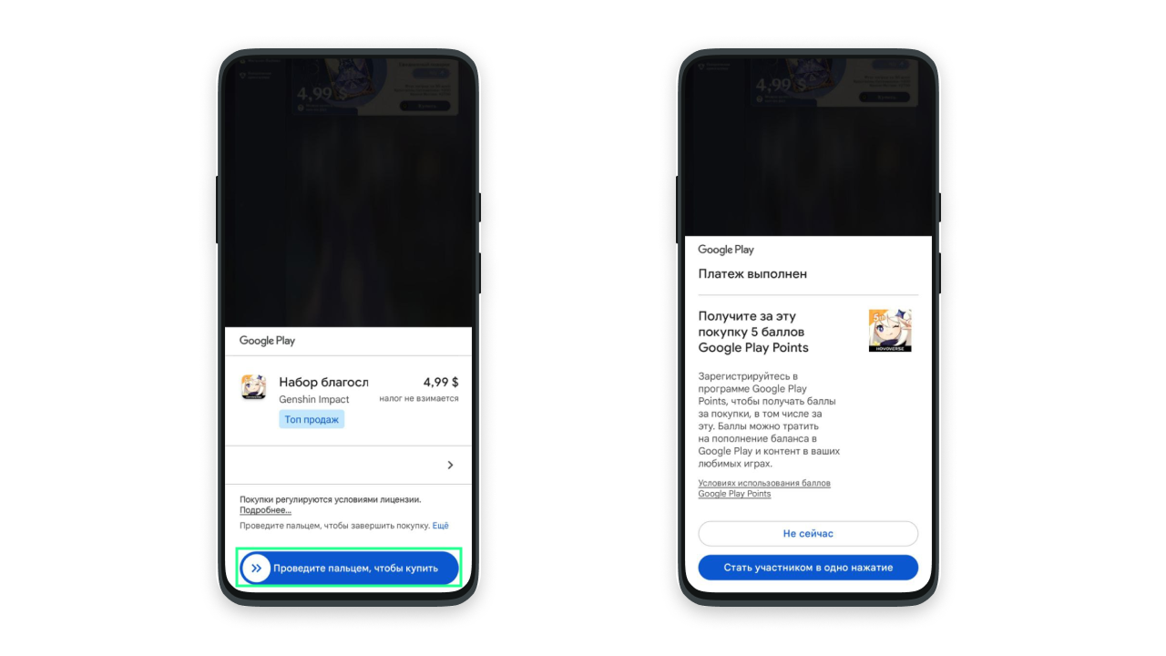 Когда ваш платежный профиль успешно настроен, а также если тариф вашей карты поддерживает оплату игровых направлений, вы можете приобретать донат в любимых играх в Google Play. Как это сделать покажем на примере доната в Genshin Impact.
