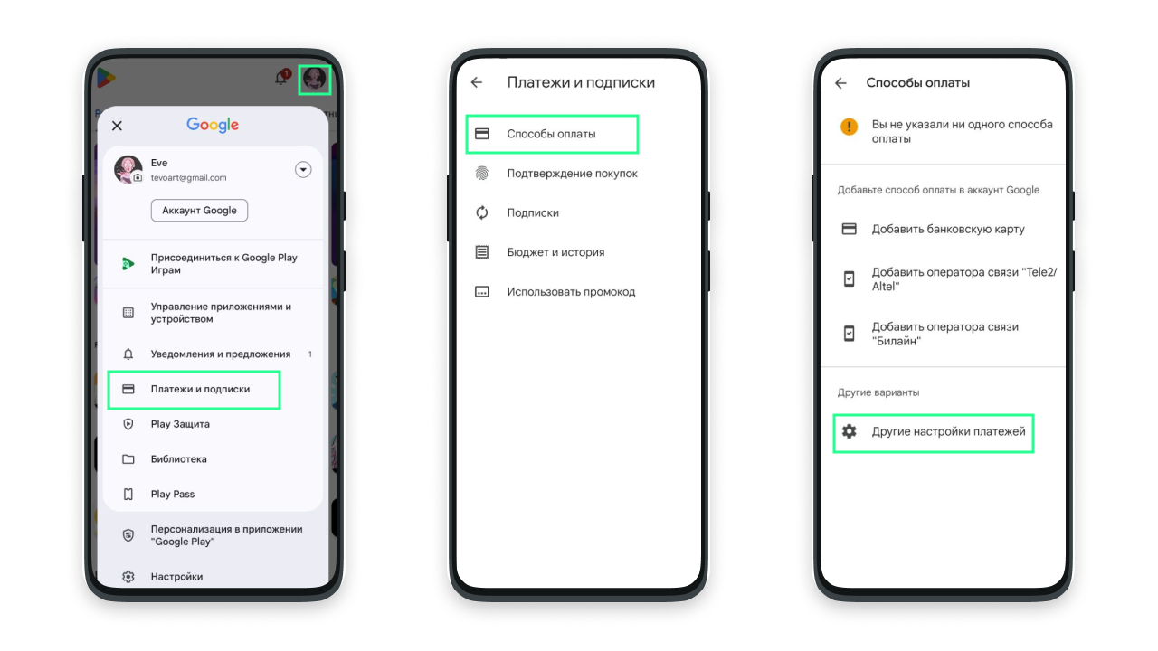 Для оплаты Google Play вам потребуется: