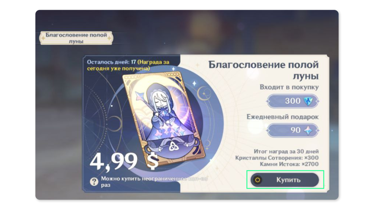 Выберите необходимую опцию доната и нажмите “Купить”.