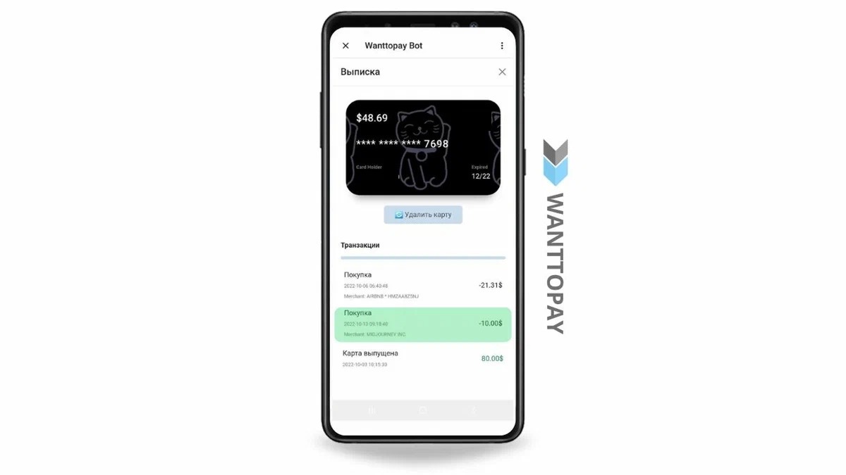 Wanttopay — это сервис, который позволяет выпускать виртуальные карты для оплаты зарубежных подписок, сервисов и покупок в интернете. Он особенно актуален для пользователей, которым нужен доступ к зарубежной банковской карте.