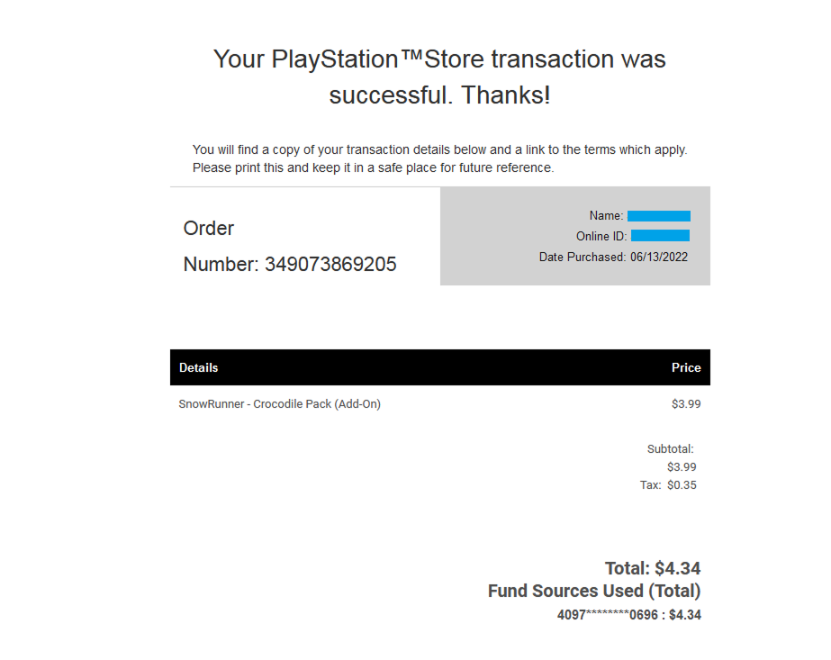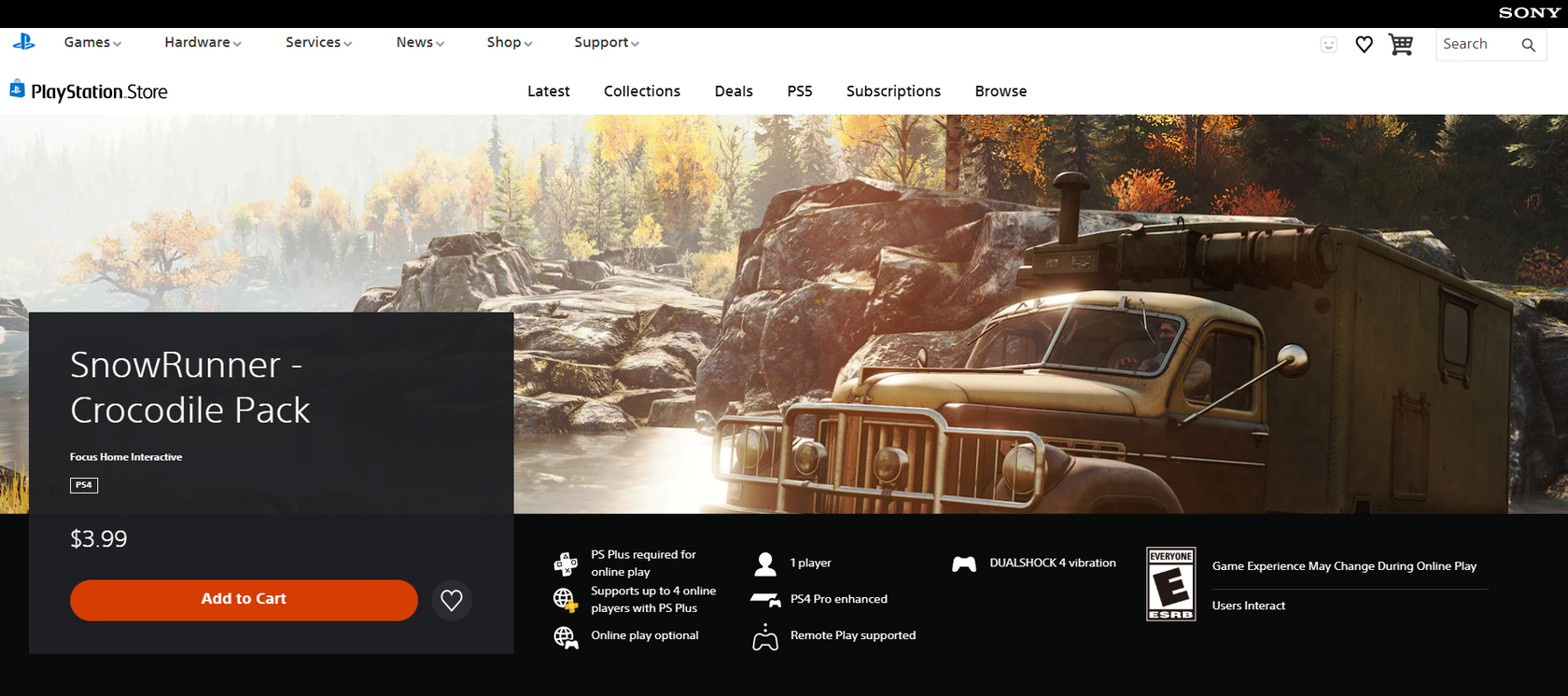 Первоначально тестирование покупки производилсь на самом сайте. Для примера была выбрана игра "SnowRunner" за 3.99$, потом с налогами она вышла у нас 4.34$. Не стоит забывать об этом при пополнении баланса вашей виртуальной карты.