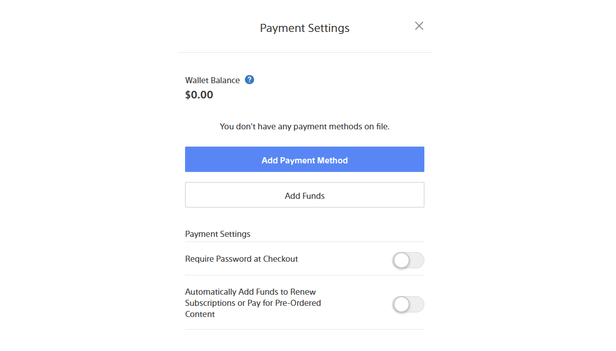 Добавляем карту чериез кнопку "Add Payment Method". Кстати потом вы так же сможете пополнять внутренний кошелёк через раздел "Add Funds".