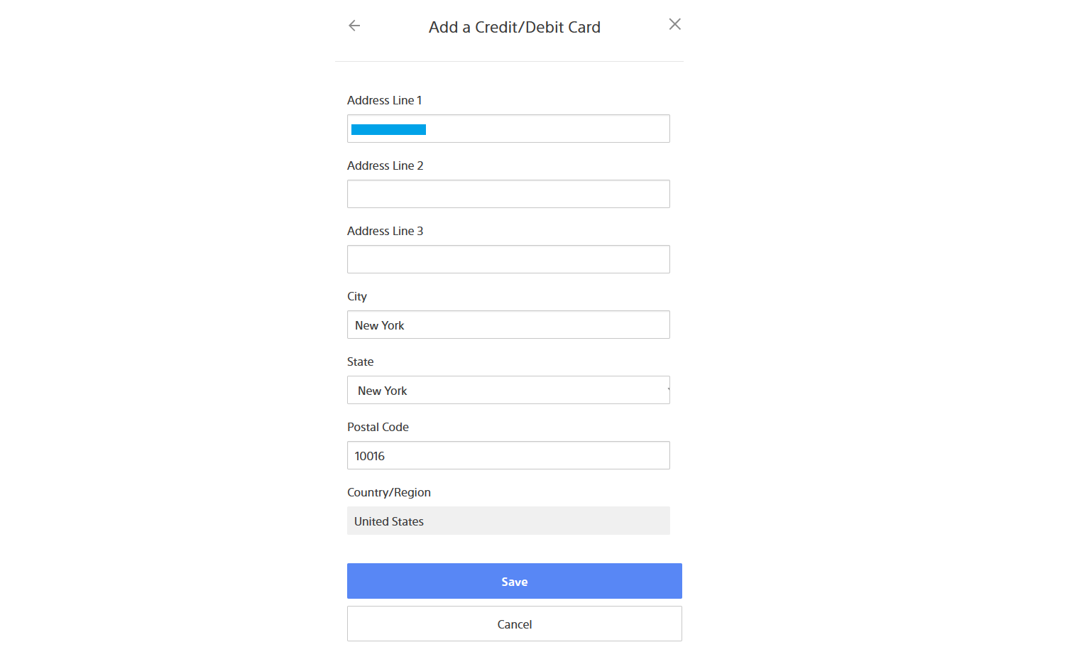 На этапе выбора страны у нас по каким то причинам сразу не срабатывал выбор для биллинга город New York, он выдавал ошибку. Но когда в местоположении выставили аналогично город New York, нас пропустили на следущий этап. Так что если на этом этапе не сработает сразу, то попробуйте сменить IP-адрес на ближайший.