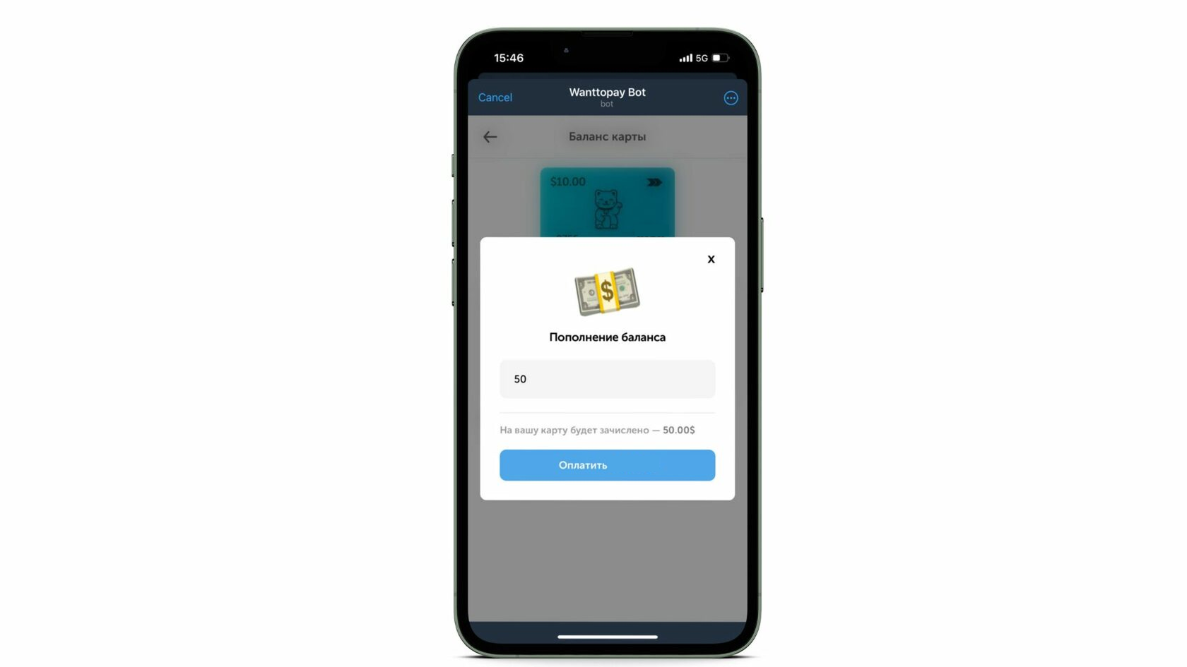 Уведомление об операции вы получите в виде сообщения от чат-бота. Либо проверить в личном кабинете Wanttopay в разделе транзакций по виртуальной карте.