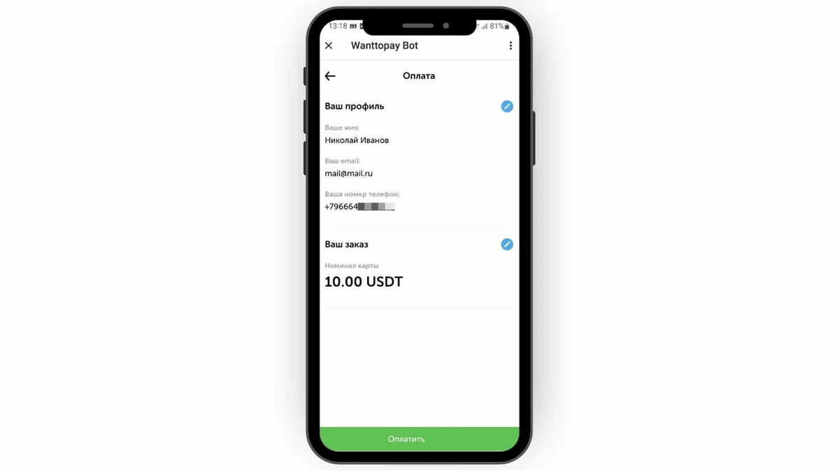 Уведомление об операции вы получите в виде сообщения от чат-бота. Либо проверить в личном кабинете Wanttopay в разделе транзакций по виртуальной карте.