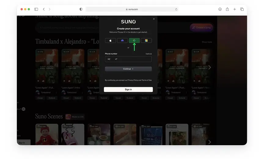 - Перейдите на официальный сайт suno.