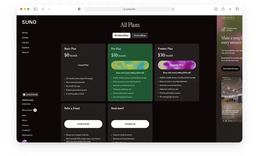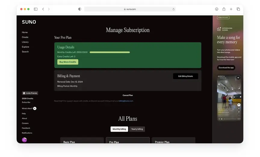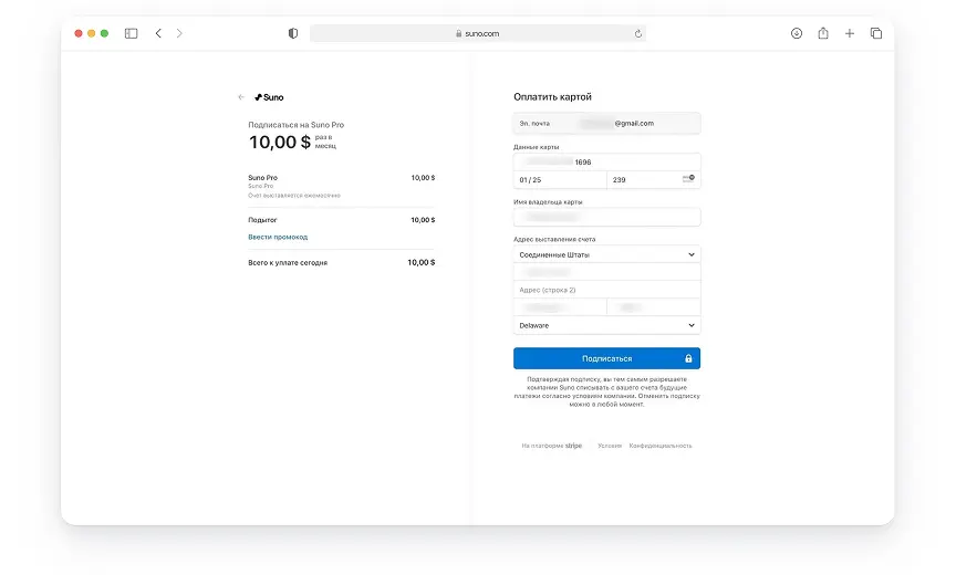 Что потребуется для оплаты подписки на Suno AI