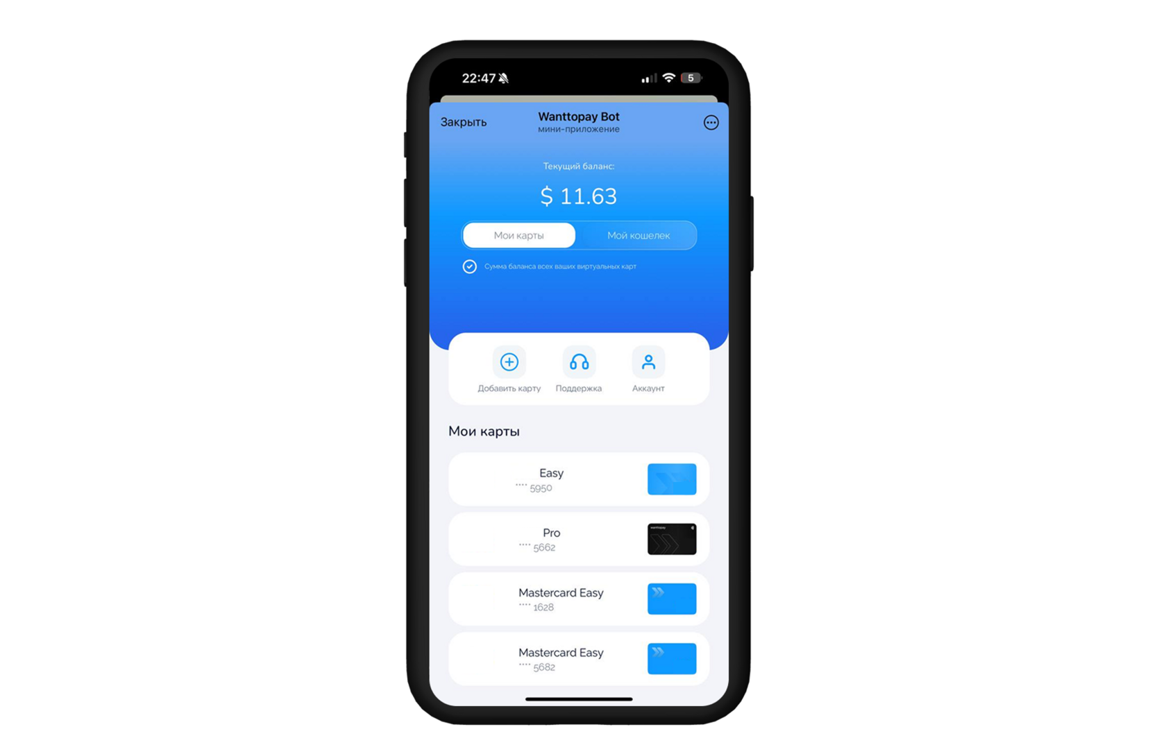 Чтобы ознакомиться со всеми возможностям карт Wanttopay, мы рекомендуем посетить наш официальный сайт, там вы сможете ознакомиться со всеми тарифами, условиями и оформить такую карту в удобном мини-приложении Telegram.