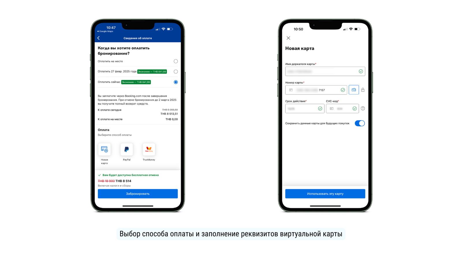 Нажмите «Использовать эту карту» и затем — «Забронировать».